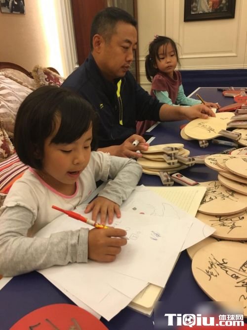 刘国梁微博晒女儿暖心照 刘国梁和女儿在家为球拍签名