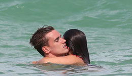 格列兹曼同女友享悠闲假日 水中拥吻场面香艳