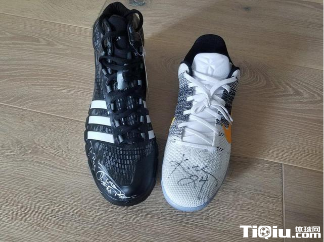 希伯特还上传了一张照片,邓肯的是一双黑色阿迪达斯球鞋,科比的则是一款白色耐克战靴,上面有两位球星的亲笔签名。倘若球鞋流到市面上,恐怕能拍出天价。