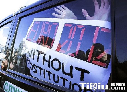 图为女权组织FEMEN行为艺术抵制无保护性爱。