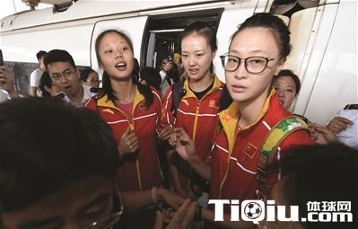 当惠若琪第一个走出车厢时,记者们立刻如潮水一般拥了上去,闪光灯噼里啪啦闪个不停。在车站工作人员的安排下,三位球员被领进车站贵宾室,接受记者们的采访。