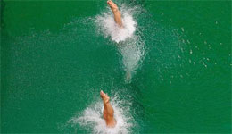 奥运跳水池水一夜蓝变绿 原因暂不明