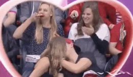 NBA直播中情侣热吻 吃披萨的大姐实力抢镜