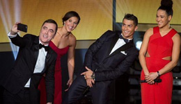 C罗化身逗比侠搞怪抢镜 梅西获奖他2次祝贺