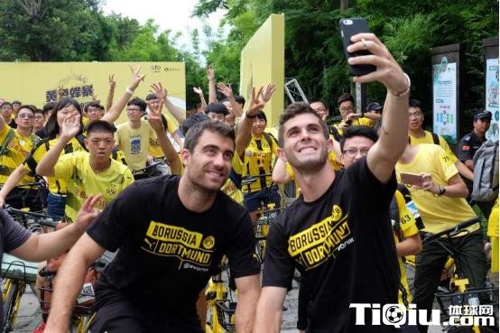 熟悉德甲的球迷都知道,多特蒙德主场队服为闪亮的黄色,因此球队素有“大黄蜂”之称。而今天普里希奇和索克拉迪斯身着球队T恤的同时,脚踩“小黄车”共享单车,确实毫无违和感。