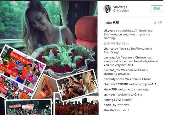 昨日下午,山东鲁能新外援意大利国脚前锋佩莱携女友瓦尔加抵达济南,引来众多山东鲁能球迷热情接机。粉丝的热情让瓦尔加心情也看起来大好,她在个人社交网站上晒出了与鲁能球迷的合影照,还夸赞鲁蜜们很棒。她写道:“激动的有一些说不出话来......鲁能的球迷们,谢谢你们,你们真的很棒!”