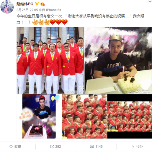 体坛娱乐 时间:2016-08-26 14:22来源:网易编辑:/西瓜【导读】昨天是男篮赵继伟的生日,从早到晚收到了大家的很多祝福。赵继伟在微博中表示感谢大家,并且会继续努力。