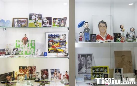 在为数众多的奖杯中,有些头衔其实是很模糊的,比如C罗曾经在一个名字不详的13岁以下锦标赛中获得最佳球员;有些看起来比较俗气,比如嘉士伯颁发的像啤酒龙头一样的单场最佳奖项。各种荣誉都罗列进来,这似乎体现了C罗有时候招致非议的过强的表现欲,但绝大多数奖杯都在说明他的天赋和成就。在展厅的中间,摆着三座金球奖的复制品,当然还有4次欧洲金靴,数座英超和欧冠奖杯,还有今年夏天在法国拿到的德劳内杯——这是葡萄牙队史上获得的最重要的奖杯。除了奖杯之外,C罗的很多球衣也得到展出。