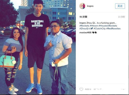 除了训练之外,如今走在休斯敦的路上,大魔王的身高也相当令人侧目,尤其是被火箭选中后,他在休城当地球迷群体里,也有了一定的知名度。一位美国网友便在自己的社交账户上晒出了他与周琦的合影,并惊呼“周琦实在太TM高大了。”