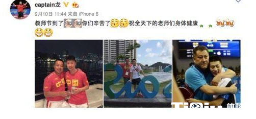 马龙认为如果没有刘国梁教练的帮助和鼓励自己不可能取得这样的成绩,马龙也在9月10日教师节这天表达了对恩师的感谢。他在社交平台中发文:“教师节到了,你们辛苦了,祝全天下的老师们身体健康。”配图的第一张便是与刘国梁的照片。