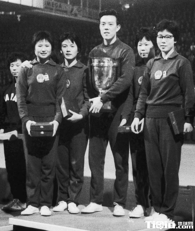 1965年,中国队首夺女团冠军,左起梁丽珍、郑敏之、容国团、林慧卿、李赫男