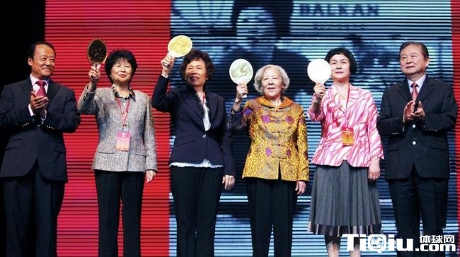 2011年10月在广东中山举行的“中国乒乓球首获团体世界冠军五十年暨中国乒坛辉煌五十载颁奖盛典”上,徐寅生和李富荣为梁丽珍(左二)、林慧卿(左三)、邱钟惠(左四)和郑敏之(左五)颁发“巾帼英雄奖”,梁丽珍正是本次活动的发起人