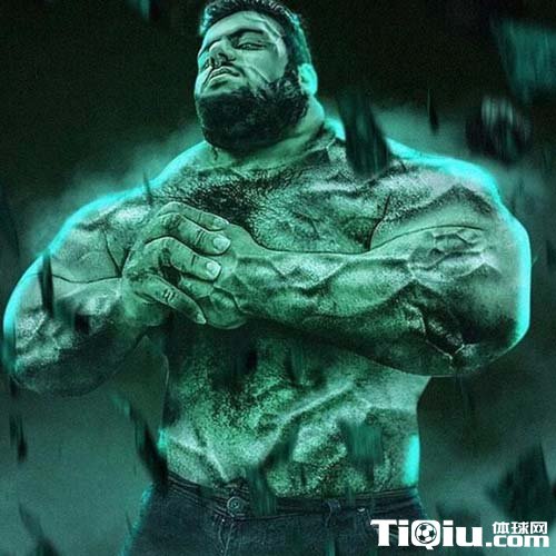 他的粉丝为了凸显他的肌肉强大,还特意为他制作了一张作品,俨然就是一个绿巨人。