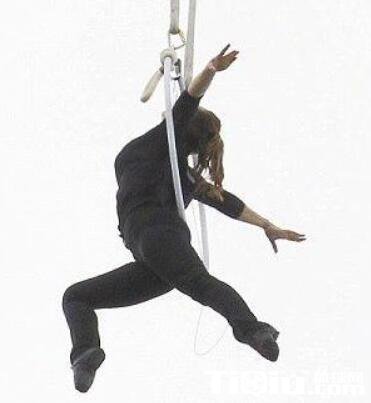 美国高空特技美女上演高空悬挂 特技美女空中芭蕾表演