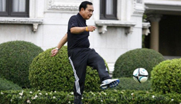 泰总理巴育踢球摔跟头 挥挥手不要人扶