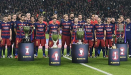 西甲第17轮,巴萨主场迎战皇家贝蒂斯,比赛开始之前,贝蒂斯球员战成两排,鼓掌迎接巴萨球员入场。巴萨队长伊涅斯塔手持世俱杯冠军奖杯,将它放在了事先准备好的展示台上,巴萨球员随后站在5座奖杯之后一起合影,赢家气质尽显,众网友则直呼“残暴”。...
