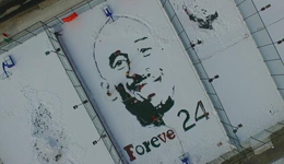 北京时间12月9日,据《洛杉矶时报》报道,为了纪念即将在本赛季末退役的湖人队球星科比,中国吉林市北华大学美术学院的学生们在篮球场的雪地里画出了科比的巨幅头像,而这一幕也引起了美国媒体的注意和报道。...